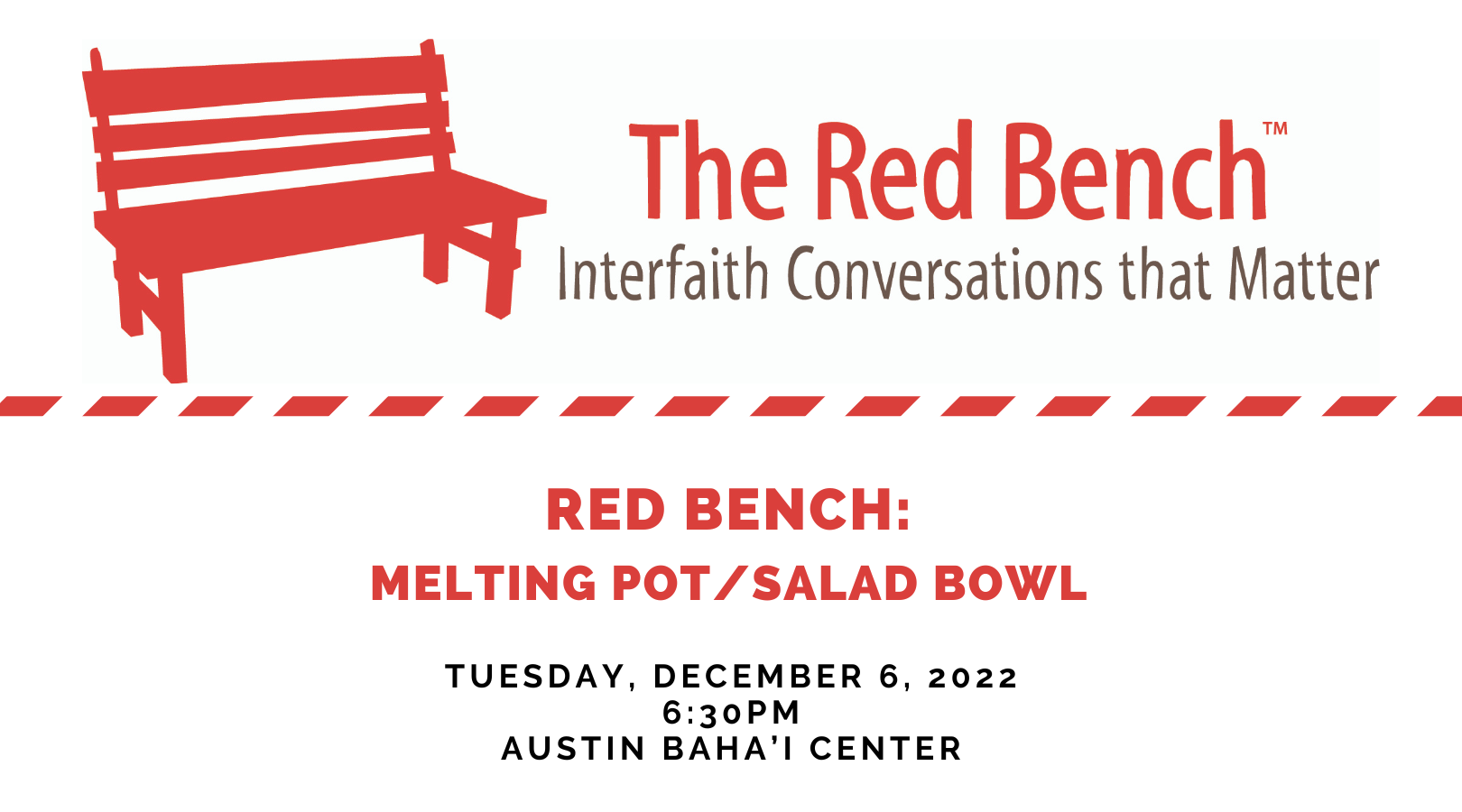 Please join iACT for a Red Bench conversation on Melting Pot/Salad Bowl on Tuesday, December 6 at 6:30pm. We will be meeting at Austin Baha’i Center (2215 E M. Franklin Ave, […]