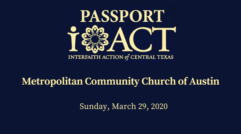 Please join the iACT Passport Program as we visit Metropolitan Community Church of Austin (8601 S 1st St, Austin, TX 78748) on Sunday, March 29, 2020 at 10:30am. If you plan to attend, please RSVP here.